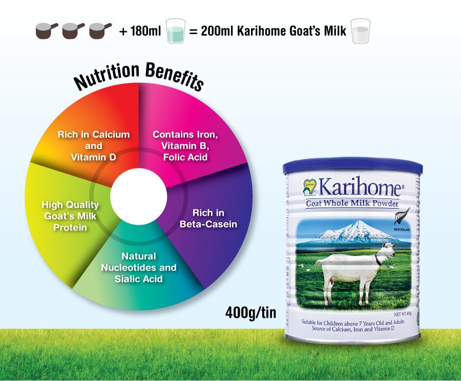 Karihome is the only goat milk adult formula that is fully imported from New Zealand. Thanks to the strict regulations mandated by New Zealand Food Standards, the manufacturing process of Karihome adult formula is done in mild heat to further enhance and preserve the freshness of the milk.